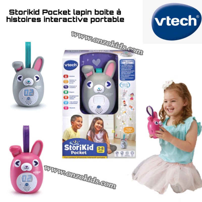 - Avec son format compact et sa poignée de transport souple, StoriKid Pocket est le compagnon idéal de votre enfant. Il raconte des histoires, des chansons, des blagues, des histoires pour s’endormir et bien plus encore. Sans ondes et sans écran, il accompagne l’enfant partout, du matin jusqu’au soir.