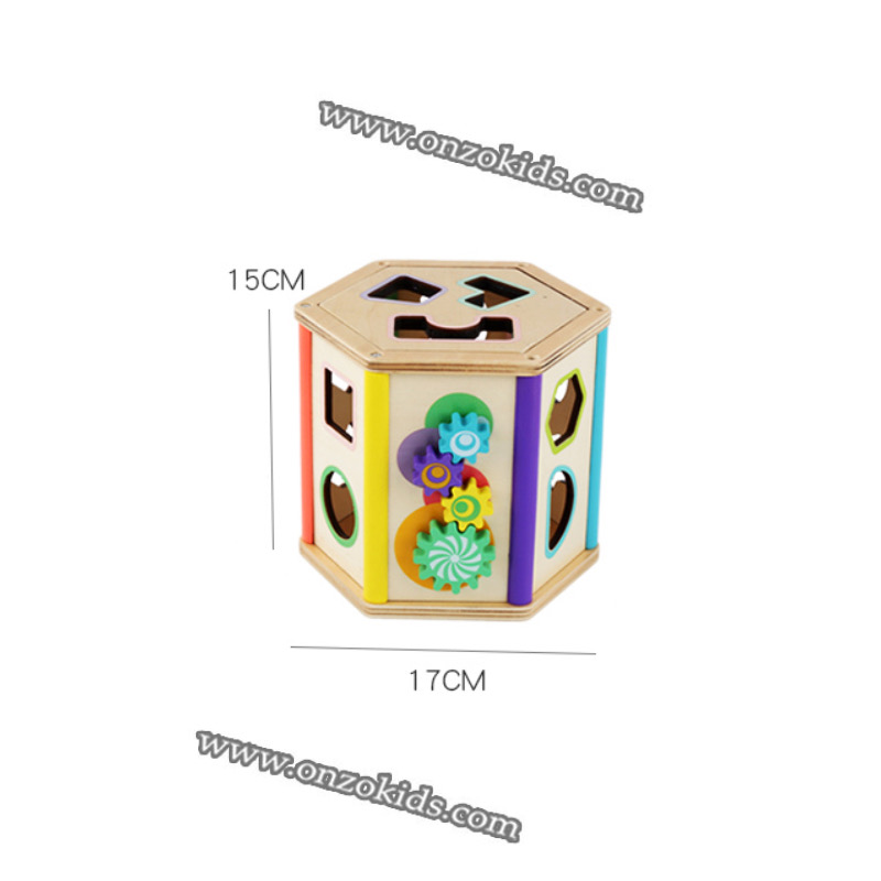 Cette boîte hexagonale multi-activités en bois colorée aide les enfants à apprendre les formes, les chiffres et les couleurs. Il propose des activités qui apprennent à faire tourner les engrenages, à faire glisser le bloc, à faire correspondre les formes et également à les tisser ensemble. Développe le contrôle des pinces et la coordination œil-main