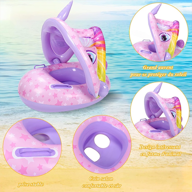 - L’auvent avec sièges flottants gonflables peut le rôle d’ombrage et de protection UV pour protéger les bébés de l’exposition au soleil dans les piscines extérieures, les plages, les parcs aquatiques et autres lieux