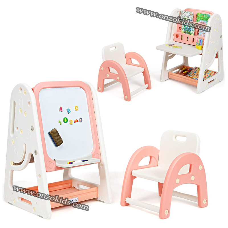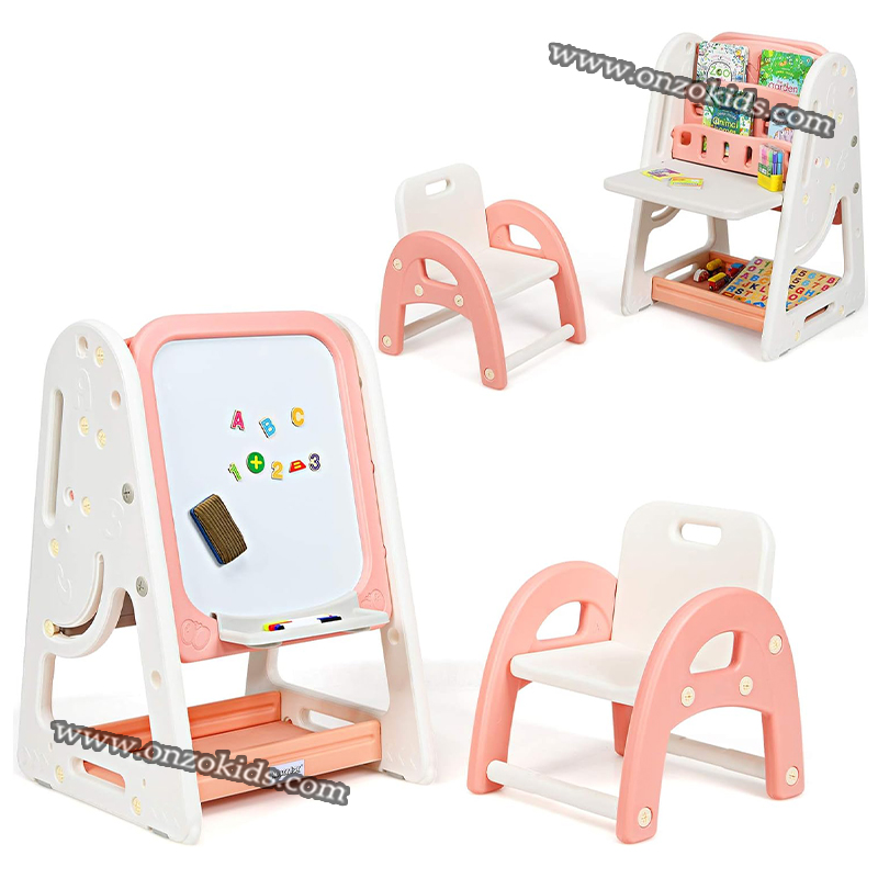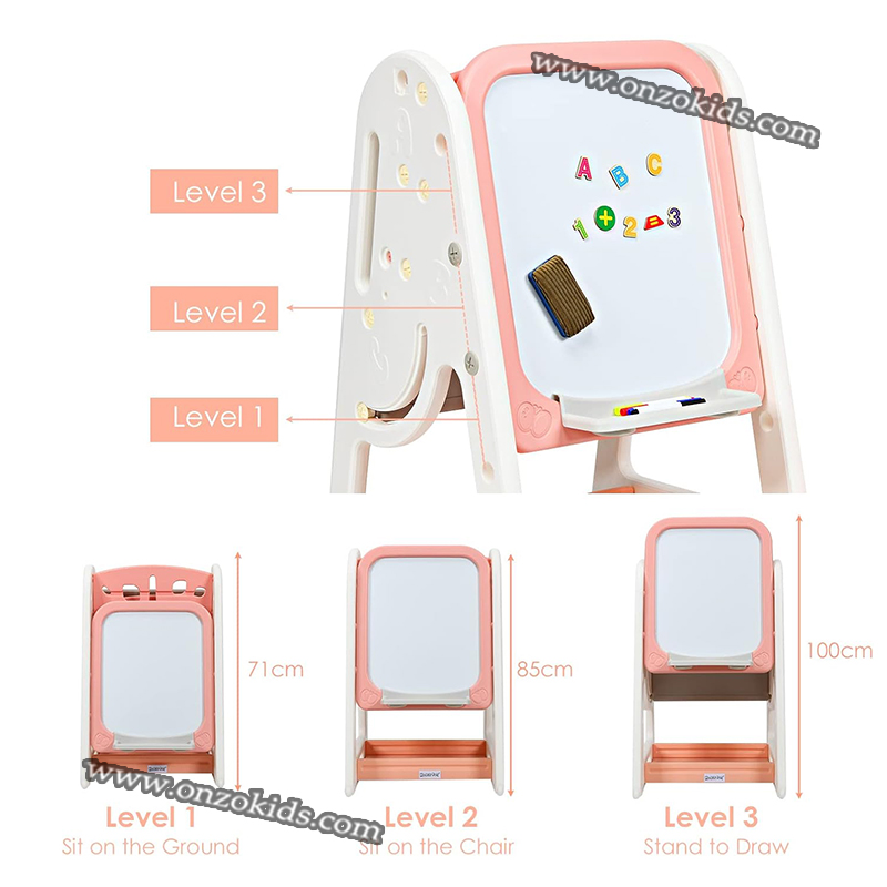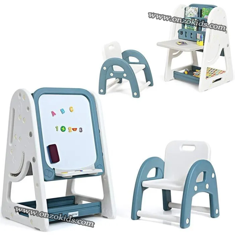 Disposition : La planche à dessin est placée au centre de l’espace ou dans un coin créatif dédié. Elle peut être inclinée pour un usage facile et ajustée en hauteur en fonction de l’âge des enfants.