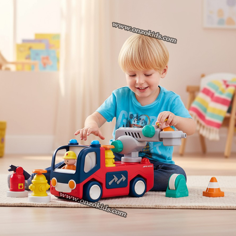 Les enfants peuvent interagir avec le camion en appuyant sur le casque du conducteur ou du passager pour déclencher des effets sonores et lumineux. Ils peuvent aussi utiliser les boutons interactifs (téléphone, tuyau, sirène) pour entendre des sons et des chansons éducatives sur la sécurité incendie.