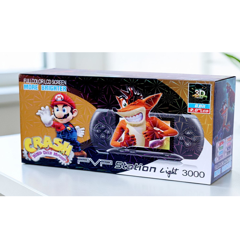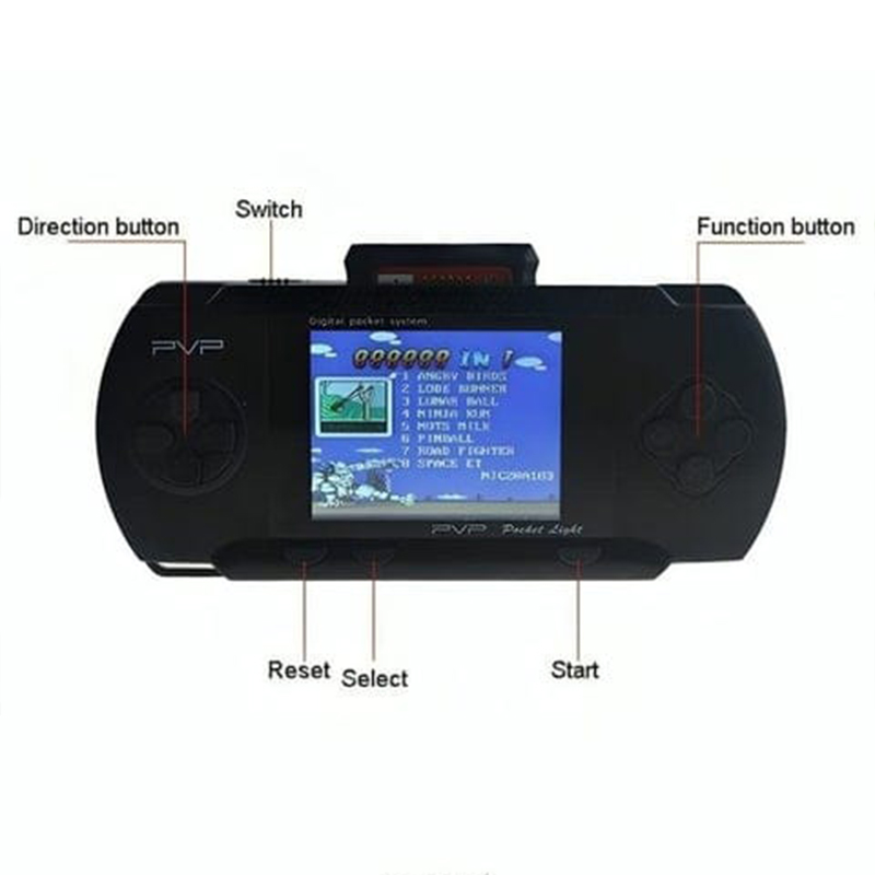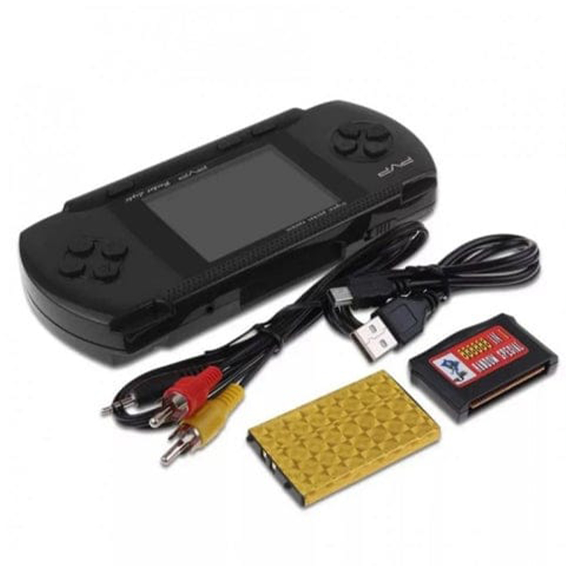 Console De Jeu Portable PXP PVP 3000 Station Light – Nombre de jeux intégrés : 200 jeux – Certains des jeux inclus sont : X-Men 2 – Spider Man Versus Batman – Super Mario – Power Rangers – Sonic Chess – Space Invaders Ultimate- Mortal Combat 3 – Golden Axe 2 – Petite Sirène – Super Shinobi – EA Hockey – Super Battleship – Gunstar Heroes – Streets of Rage – Pac Mania – Wrestle War – Shadow Dancer – Trouble Shooter – Knockout Boxing Et bien d’autres encore – Écran : 2.7 Pouces LCD – Capacité de batterie : 700 mAh – Autonomie : 4 a 7 Heures – Interface vidéo/audio : AV – Mode d’alimentation : chargement USB/batterie lithium-ion intégrée – Prise en charge de la télévision