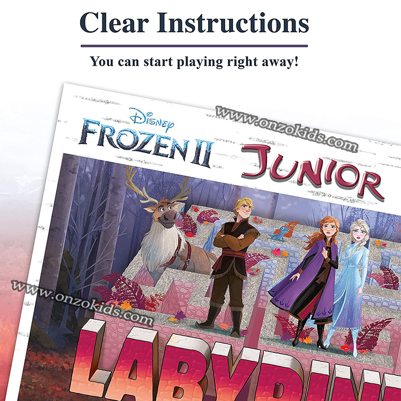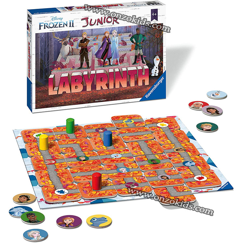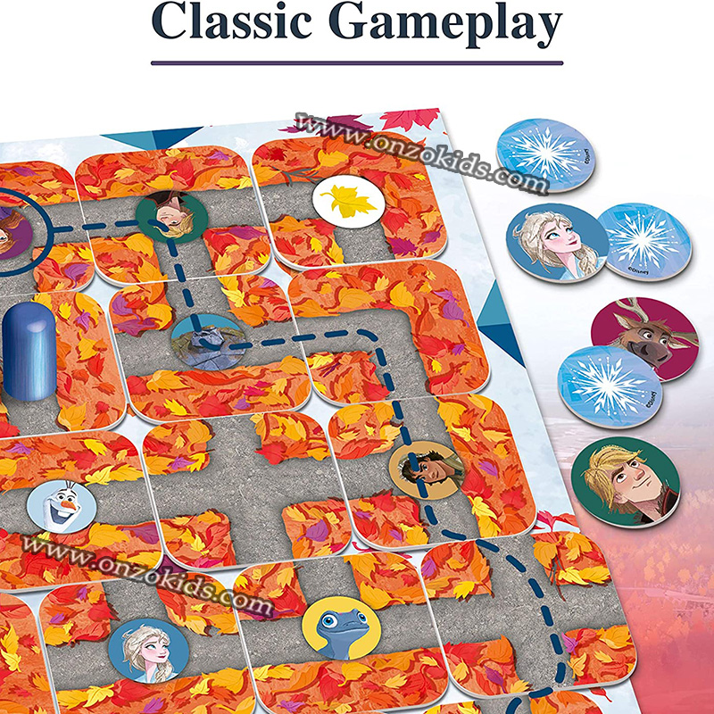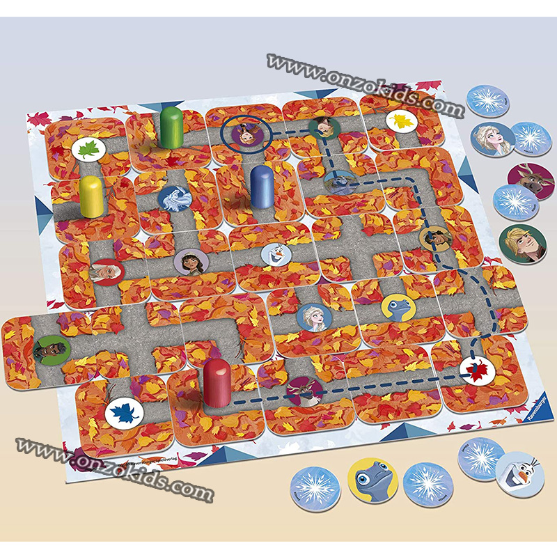 Qui peut se frayer un chemin dans le labyrinthe de neige et de glace pour découvrir les courageuses sœurs Anna et Elsa, ou trouver Olaf, le drôle de petit bonhomme de neige ? Si vous pouvez déplacer les cartes du labyrinthe de manière habile et tactique, vous pouvez créer de nouveaux chemins là où il y avait autrefois des murs et retrouver tous vos personnages de Frozen préférés !