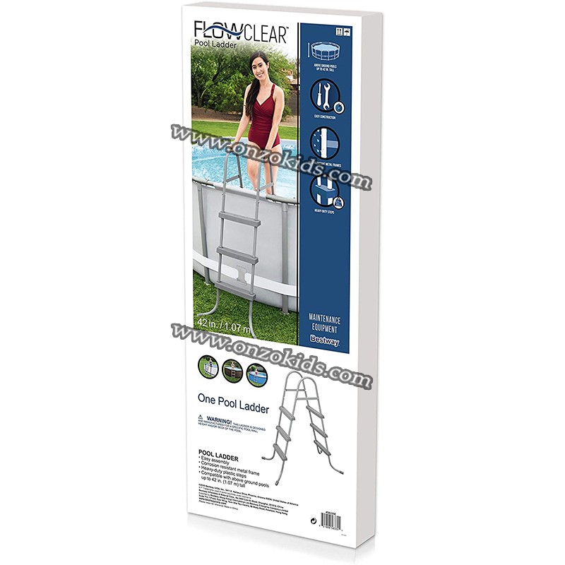 Conçue pour fonctionner en tandem avec une piscine hors-sol de 42 pouces (107 cm pour les ventilateurs métriques), l’échelle de piscine Bestway comprend des marches en plastique robustes antidérapantes et amovibles.