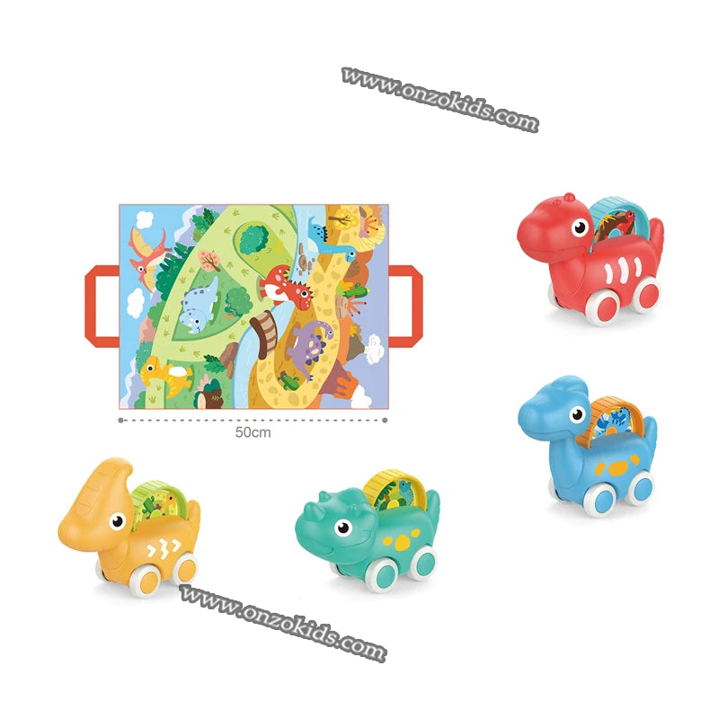 Ensemble de jouets dinosaures 2-en-1 : Ce set comprend 4 voitures de dinosaures et un tapis de jeu transformable en sac de rangement pratique.