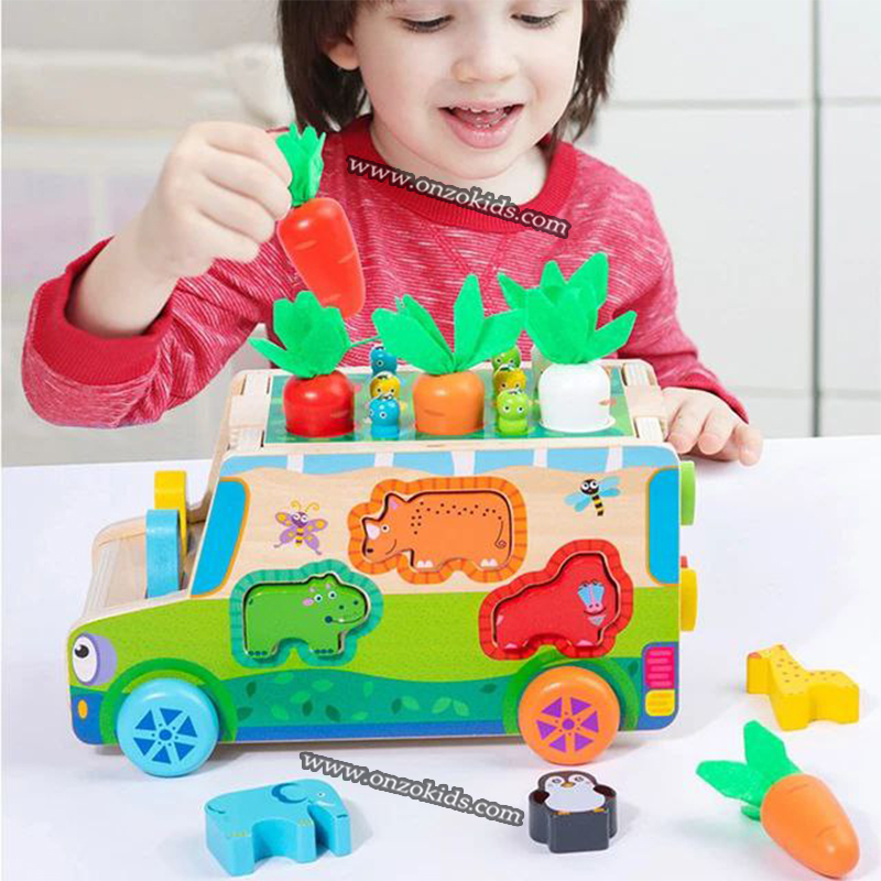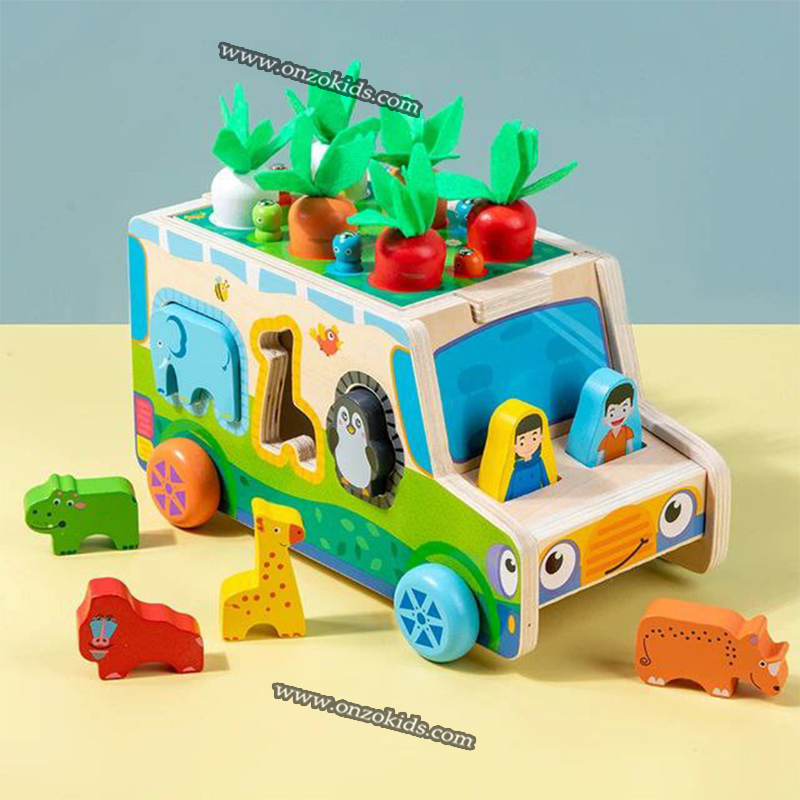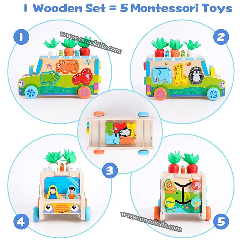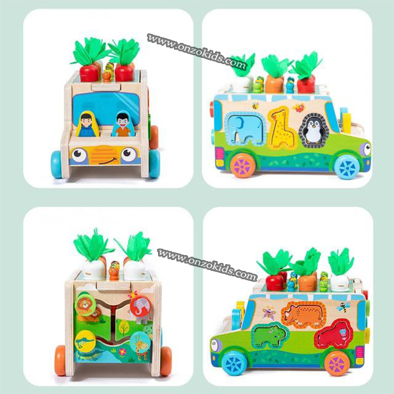 𝐌𝐮𝐥𝐭𝐢𝐟𝐨𝐧𝐜𝐭𝐢𝐨𝐧 𝐕𝐨𝐢𝐭𝐮𝐫𝐞 𝐁𝐨𝐢𝐬 𝐁𝐞𝐛𝐞 𝟓 𝐞𝐧 𝟏 : Cette jouets bois ressemble à une voiture que tous les enfants aimeront, et cette petite voiture en bois a 6 côtés et peut être jouée de différentes manières, y compris Récolter des carottes, attraper des insectes, faire correspondre les formes et des labyrinthes. Des couleurs vives et un gameplay riche suffisent à susciter l’intérêt des enfants.