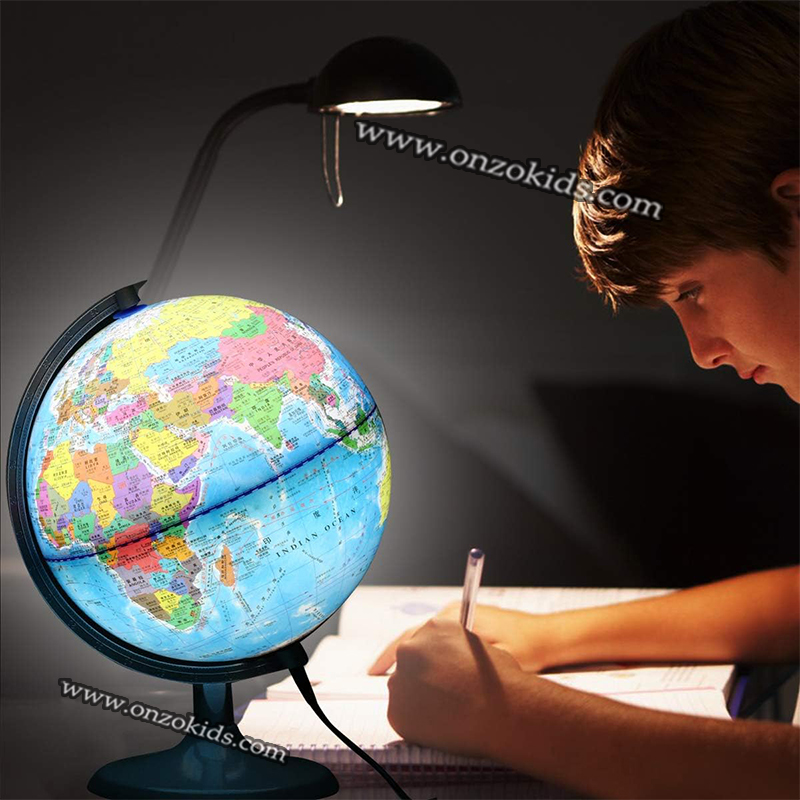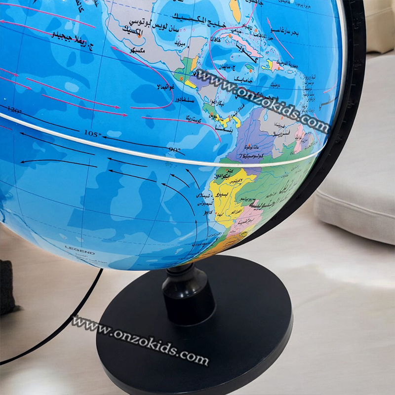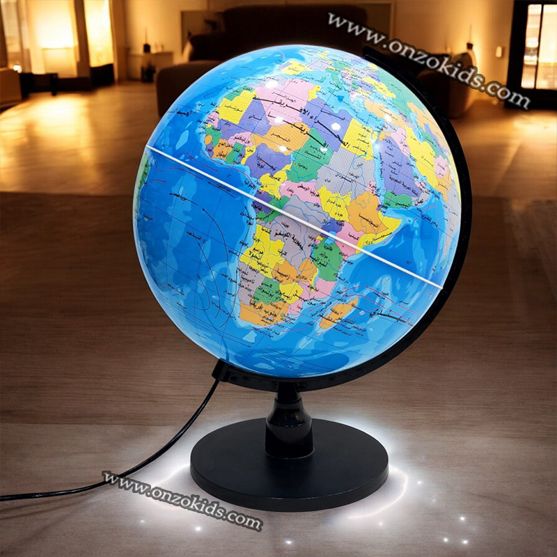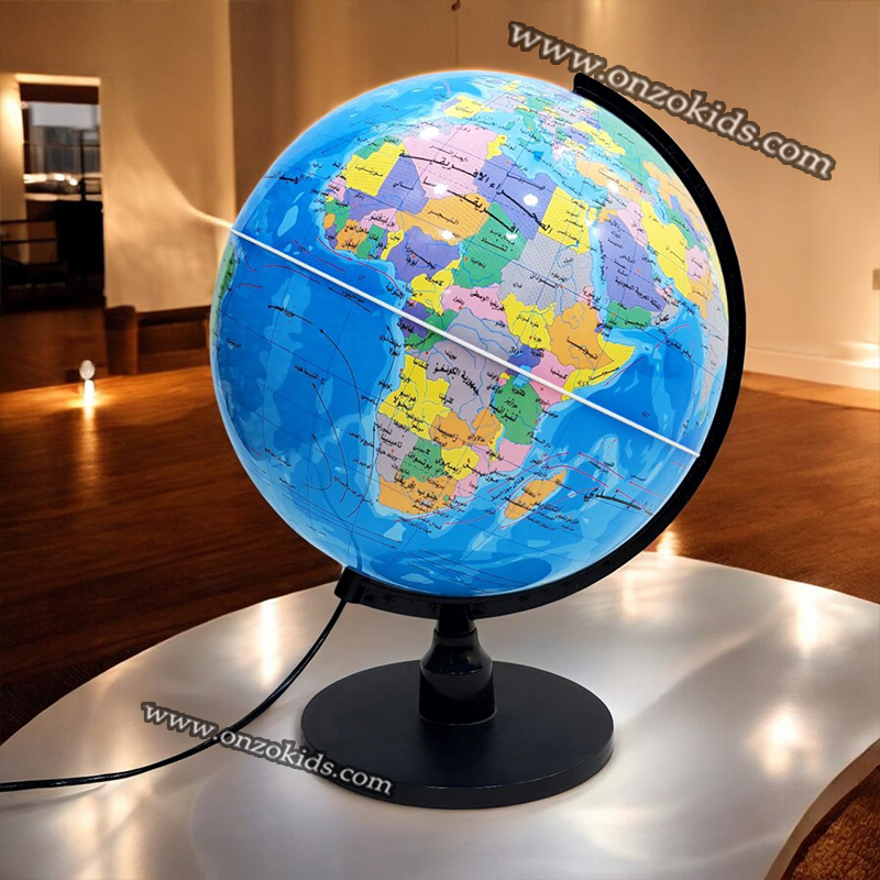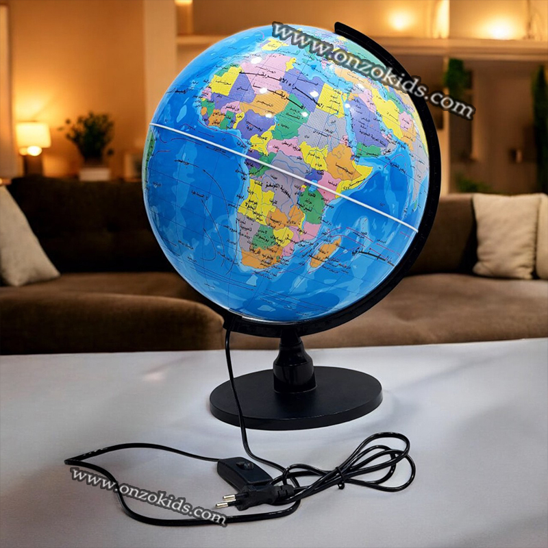 Un globe lumineux en plastique est un globe terrestre qui intègre un éclairage interne, ce qui permet d’illuminer les cartes géographiques représentées sur sa surface. En plastique léger mais robuste, ce type de globe est souvent utilisé comme objet décoratif ou éducatif, offrant une vue claire des continents, des océans et des pays. Lorsqu’il est allumé, les détails géographiques sont davantage mis en valeur, ce qui crée une ambiance agréable et chaleureuse dans une pièce. Le design peut varier, mais beaucoup de globes lumineux ont une base stable, souvent en métal ou en plastique, et un interrupteur pour allumer ou éteindre la lumière.