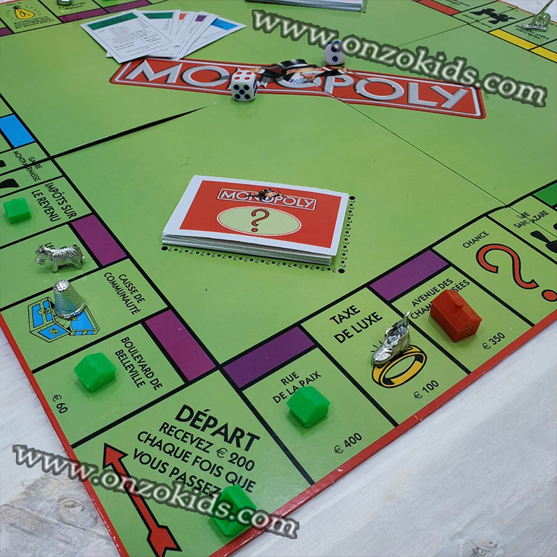-Soyez le 1er à acheter les propriétés sur le plateau, à construire maisons et hôtels pour encaisser les loyers les plus élevés et offrez-vous peut être la mythique Rue de la Paix.