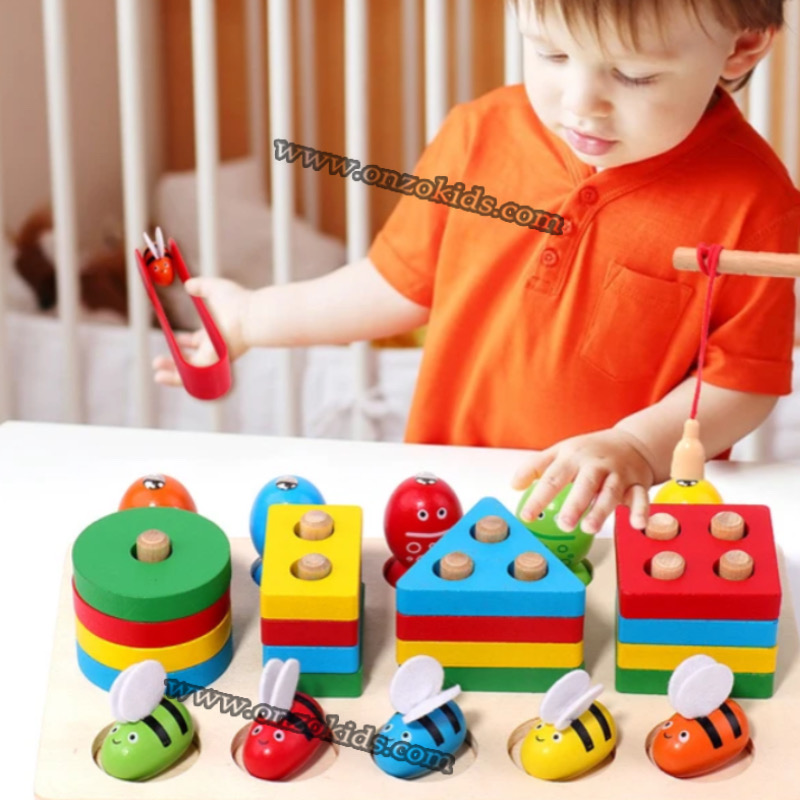 - Jouet éducatif 3 en 1 : nos jouets Montessori se composent de jeux de pêche magnétiques et d’un puzzle de blocs empilables et de la petite abeille. avec lequel les enfants peuvent trier ou empiler des blocs pour compléter différents bâtiments afin d’aider les jeunes enfants à apprendre les formes, les couleurs, le comptage et la coordination œil-main.