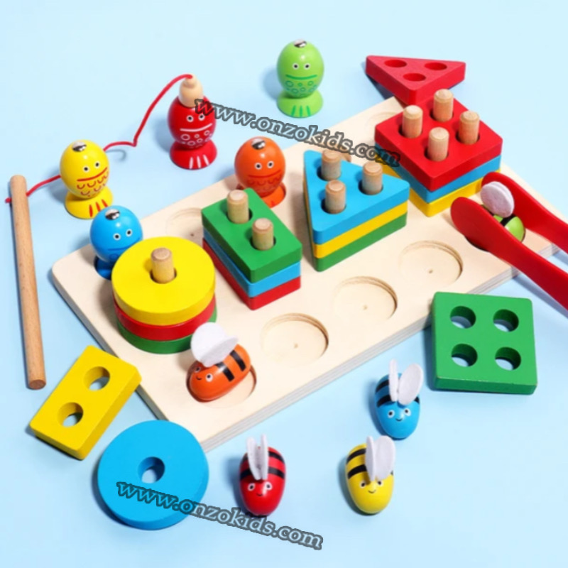 - Plusieurs options de jeu : le jeu de pêche utilise des cannes à pêche pour attraper différents poissons afin de développer les capacités pratiques des enfants. Des blocs amovibles amovibles de différentes formes géométriques peuvent contenir les pièces et les empiler. Ils s’amusent également davantage en jouant aux abeilles. Ils aident à développer la motricité fine, la créativité et la pensée logique.