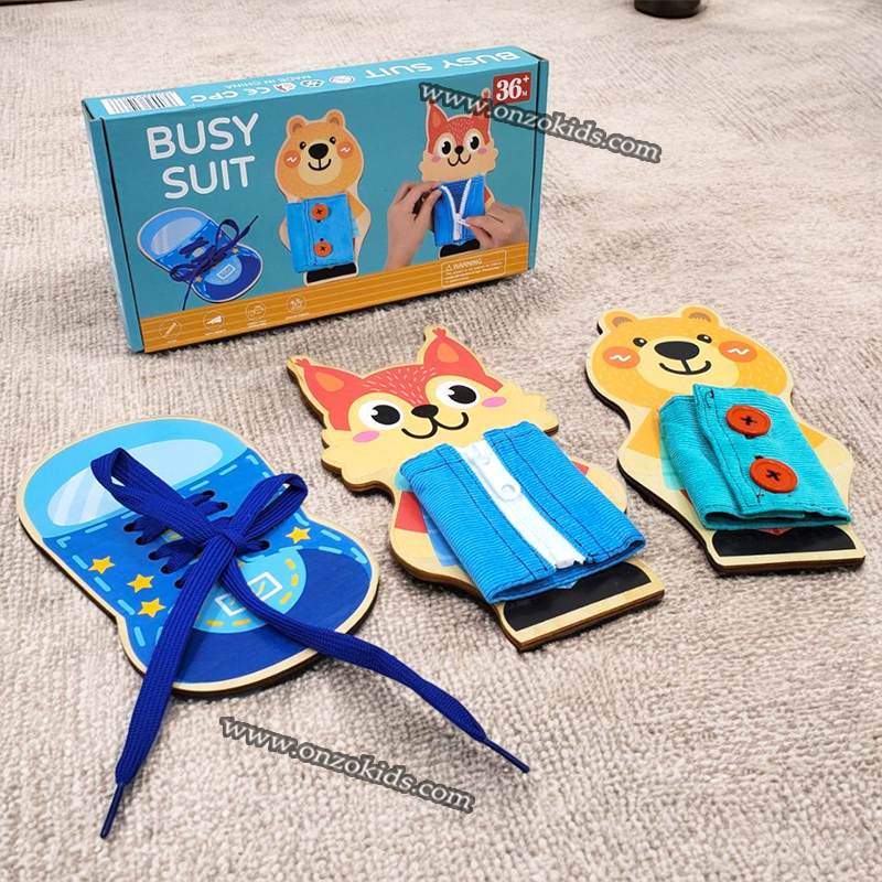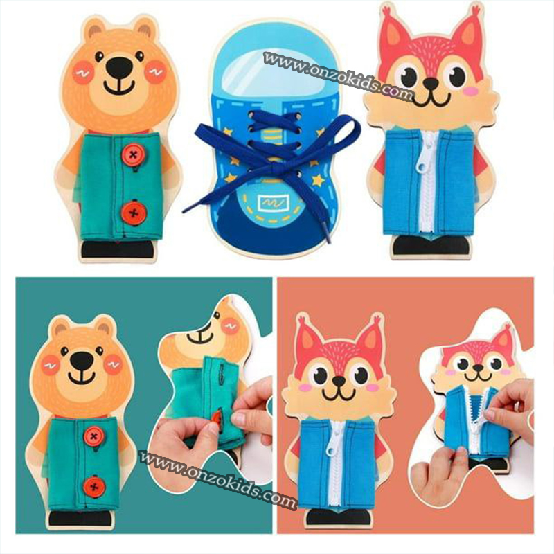 Adorable regards: Bear et écureuil en forme de planches occupées avec des lacets, des fermetures à glissière, des boutons, et enseigner les compétences de base de l’habillage, très populaire avec les enfants