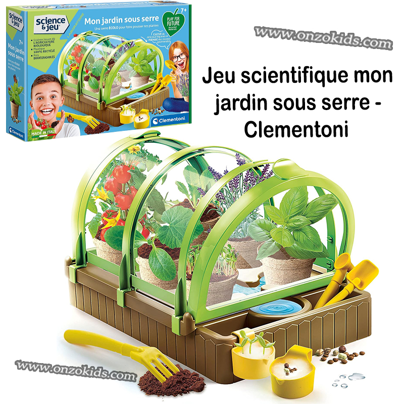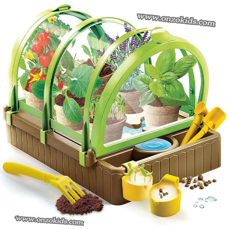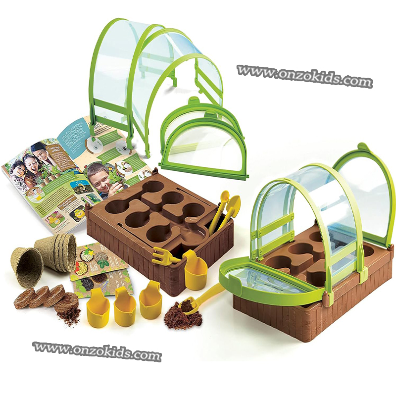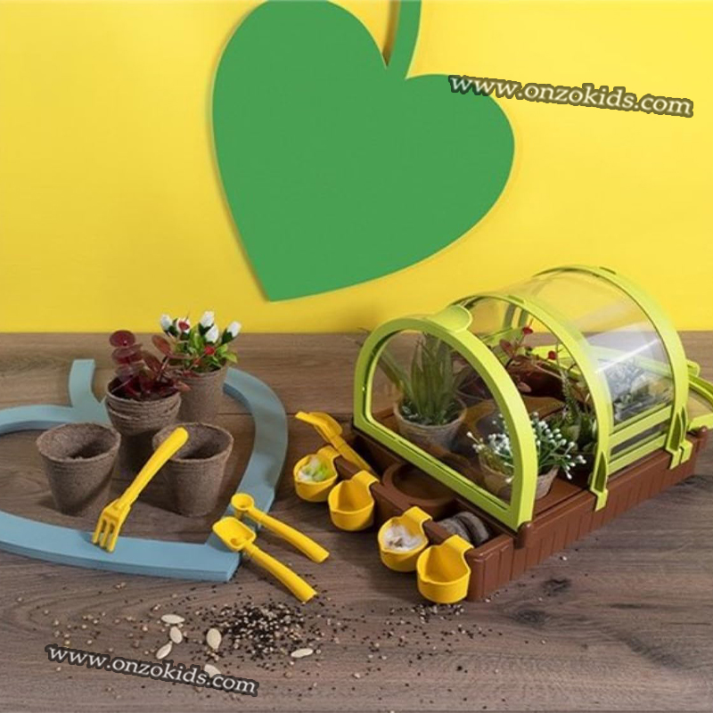 Avec un kit complet d’outils et des pots spéciaux pour la germination qui aideront l’enfant à planter et à faire pousser ses plantes.