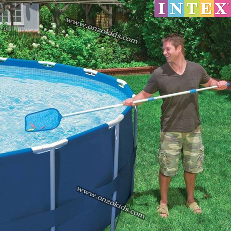 La tête du manche dispose d’un adaptateur pour fixer les accessoires d’entretien Intex , tels que le filet et la buse d’aspiration inclus dans ce pack.