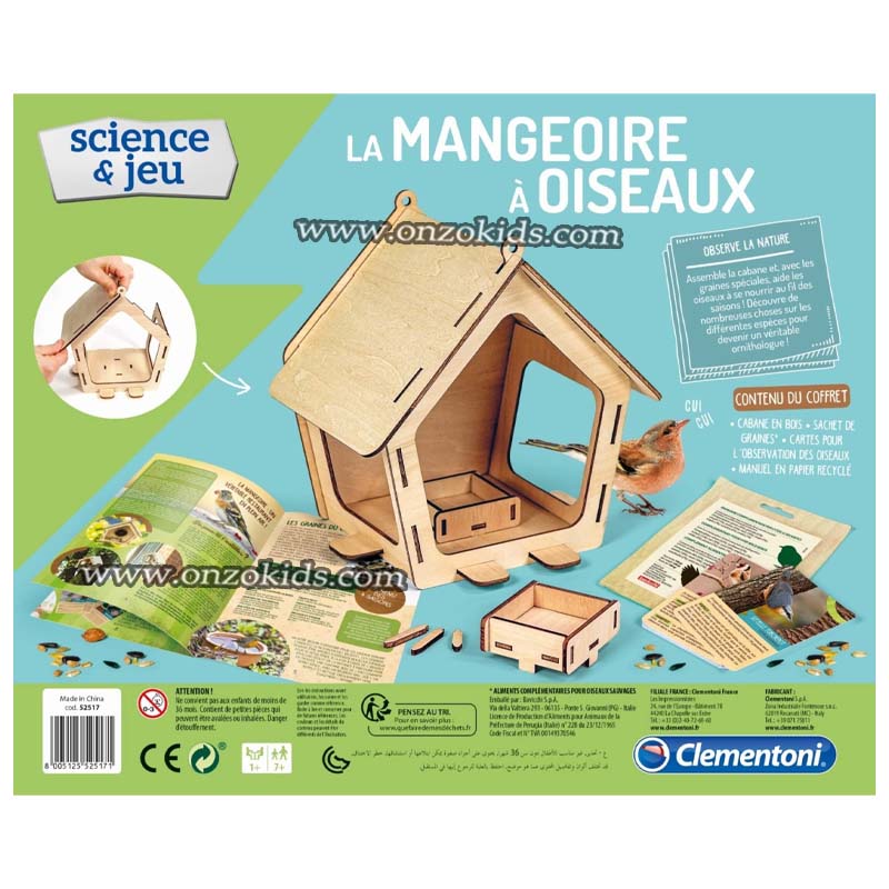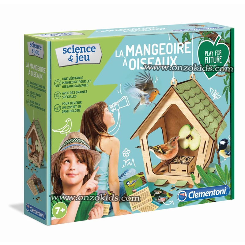 Une véritable mangeoire à oiseaux en bois à assembler et à décorer. La mangeoire à oiseaux permettra à l’enfant d’observer différents types d’oiseaux et de les attirer avec leur graine préférée ! Il les aidera à grandir et à se nourrir, notamment en plein hiver. Le coffret scientifique contient une mangeoire en bois à assembler, des cartes pour reconnaître les différentes espèces d’oiseaux et des graines spéciales pour les nourrir tout au long de l’année ! Le but des jeux de la gamme Play for Future est d’aider chacun à comprendre l’importance de la durabilité et du respect de l’environnement par le jeu.