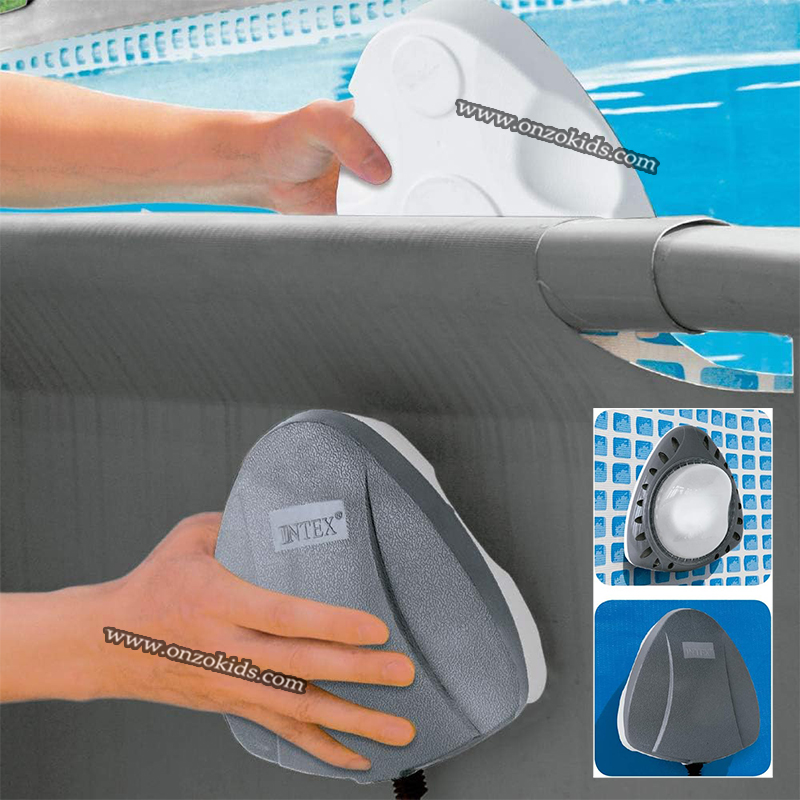 Lampe magnétique à LED pour piscine hors sol.Pour un éclairage plus efficace qu’une lampe traditionnelle de 50 watts !La technologie de la lampe utilise peu de tension à travers les parois mais génère une puissante lumière dans la piscine.Spécialement conçu pour les piscines hors-sol, le système d’aimant super-puissant permet de fixer la lampe sur la paroi du liner. Aucun branchement dans la piscine, mais à l’extérieur du bassin.