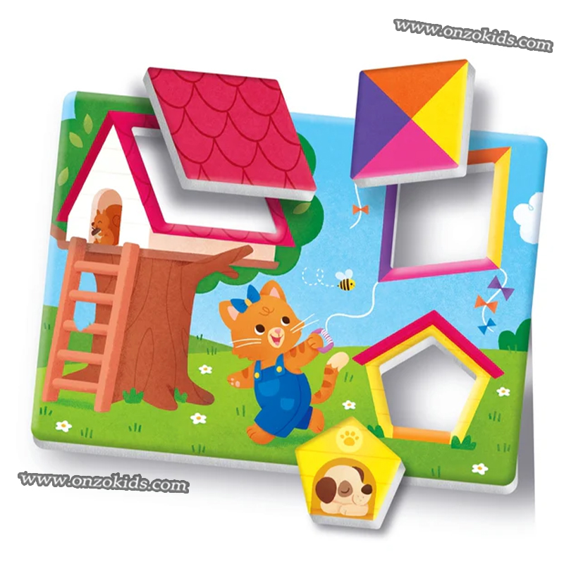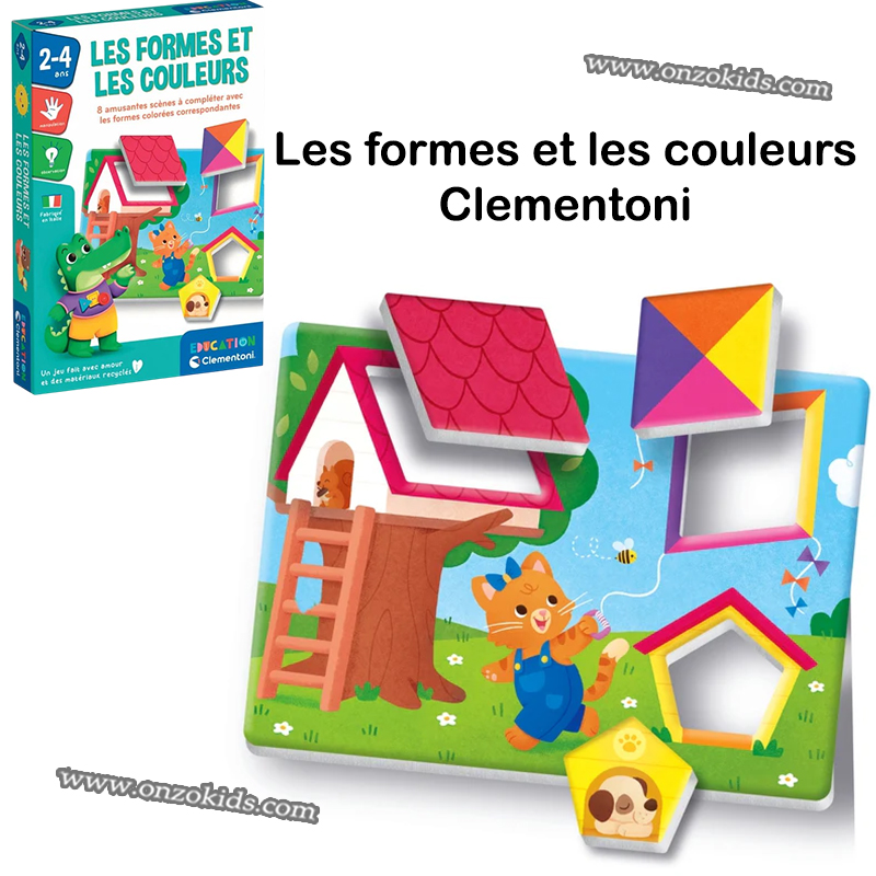 Un jeu simple et amusant pour encourager les plus petits à reconnaître les formes géométriques et les 4 couleurs principales.