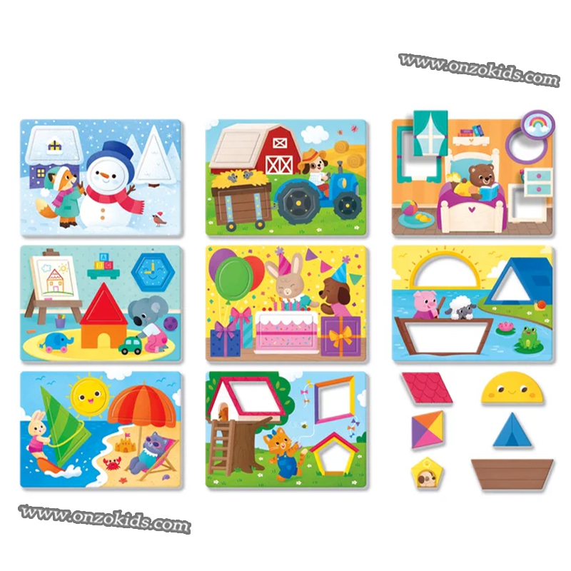 Contient 4 planches et 16 pièces colorées pour jouer avec 3 modes de jeu différents et se familiariser avec les formes et les couleurs.