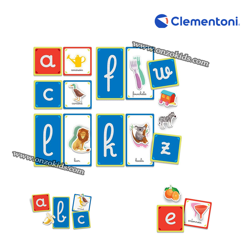 À travers le toucher, l’enfant apprend d’abord à reconnaître la forme des lettres puis développe sa capacité d’association en associant les sujets aux cartes.