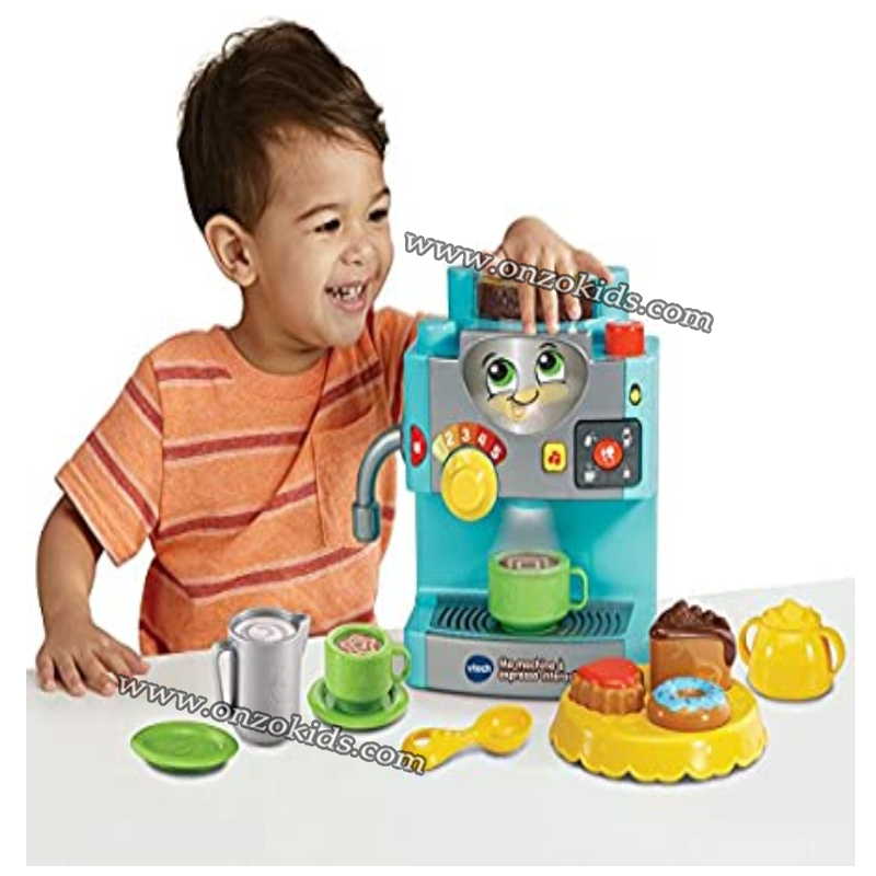 Avec Ma machine à expresso interactive de VTech, votre enfant joue à préparer et servir des boissons comme les grands. Il développe son sens de l’observation et apprend également les formes, les couleurs et les chiffres en préparant les commandes demandées par la machine.