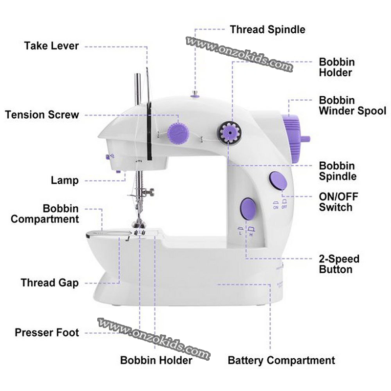 Équipé d’une pédale, coupe-fil, canette à coudre, aiguilles, bouton marche / arrêt et d’une ampoule intégrée adaptée à la couture de nuit.