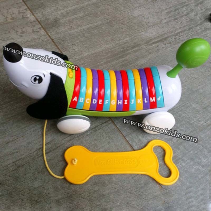Ce malicieux et mignon petit chien à la fière allure connait son alphabet sur le bout des pattes ! Tire sur sa laisse pour marcher en sa compagnie et entendre la chanson de l’alphabet.