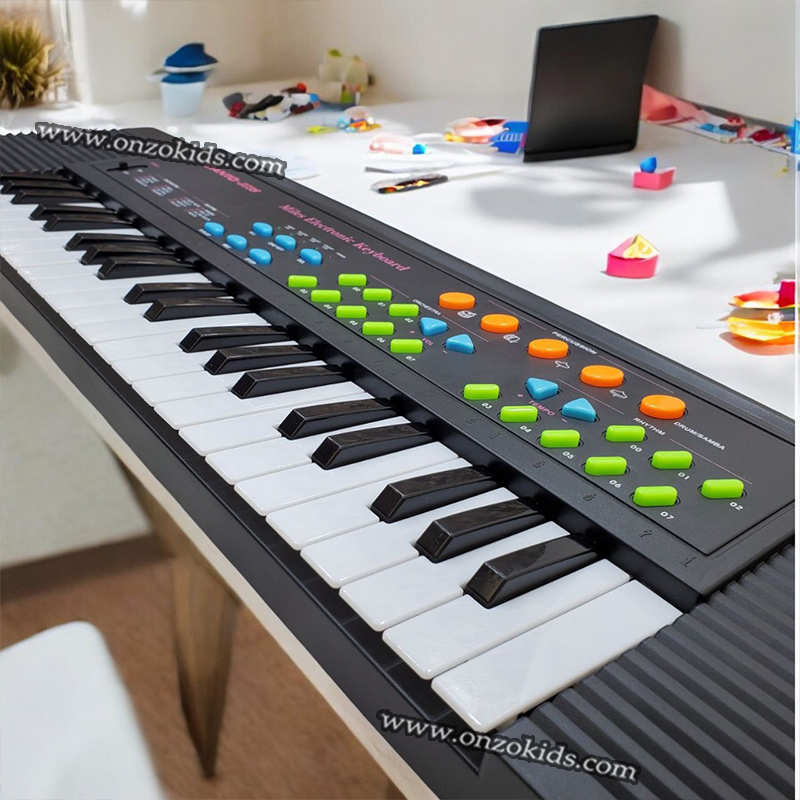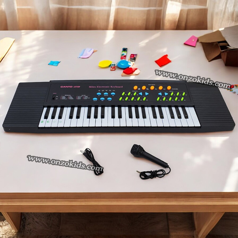 Un piano électronique de 44 touches est un instrument compact et portable qui convient aux musiciens débutants ou intermédiaires. Voici une description typique : Caractéristiques générales : Clavier : 44 touches, généralement de taille réduite (mini-clavier), idéal pour économiser de l’espace et pour les enfants ou ceux avec des contraintes de mobilité. Sonorités : Plusieurs sons intégrés, incluant souvent piano classique, orgue, claviers électriques, ou d’autres instruments. Fonctionnalités : Polyphonie limitée (8 notes simultanées). Effets intégrés comme la réverbération ou le chorus. Métronome intégré pour l’accompagnement. Connectivité : Prise casque pour jouer en silence. Port MIDI ou USB pour connecter à un ordinateur ou à d’autres appareils. Alimentation : Par piles ou adaptateur secteur, facilitant son utilisation en déplacement. Idéal pour : Les débutants qui souhaitent apprendre les bases du piano. Les amateurs de musique en quête d’un instrument portable. Les enfants grâce à son design compact et ses touches réduites.