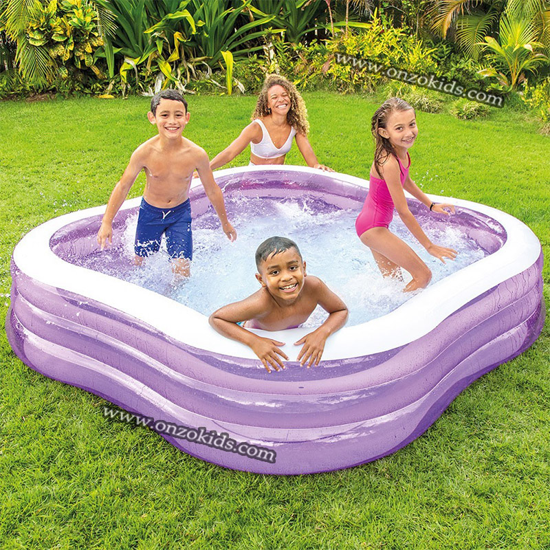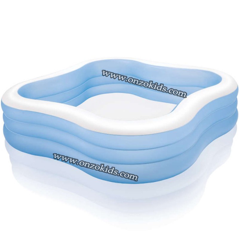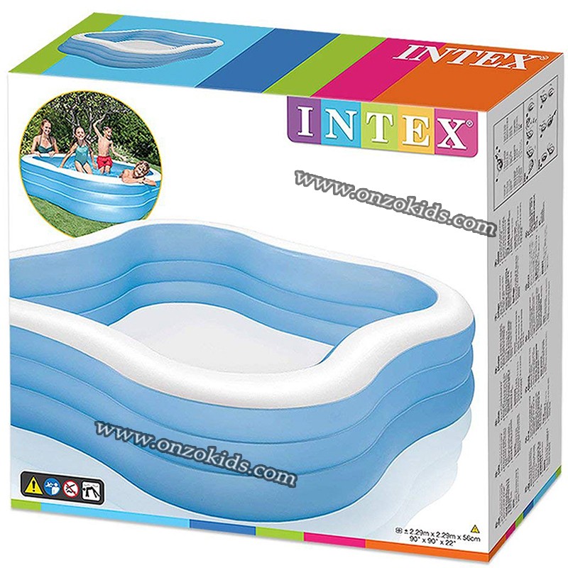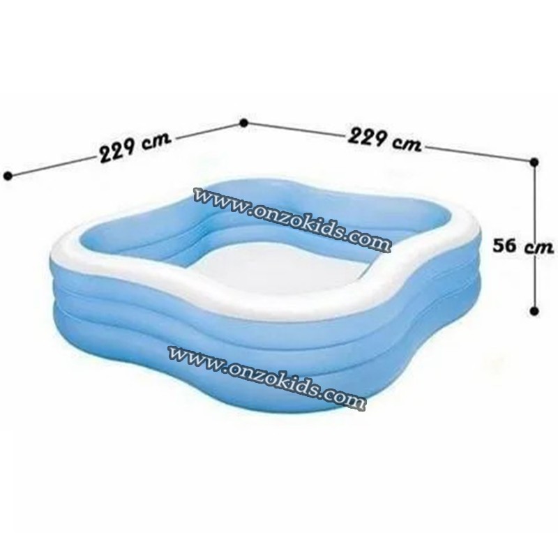 Piscine gonflable Intex de la gamme Swim Center, forme carrée et angles arrondis, capacité : 1 250 litres / eau, dimensions : 229 x 56 cm.