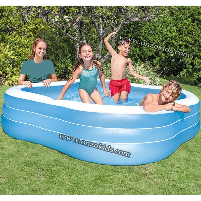 Cette piscine gonflable INTEX est conçue avec la couleur bleue et les mêmes caractéristiques de sécurité. Amusement sûr.