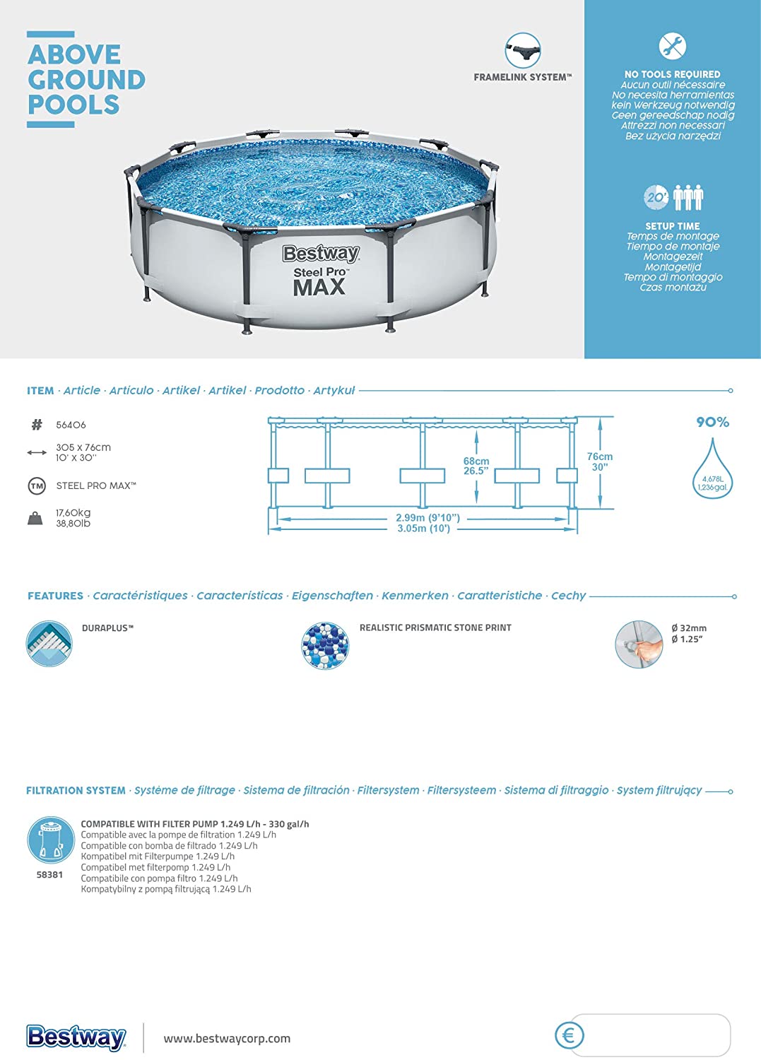 Piscine hors sol ronde Steel Pro Max 305x76cm -Bestway