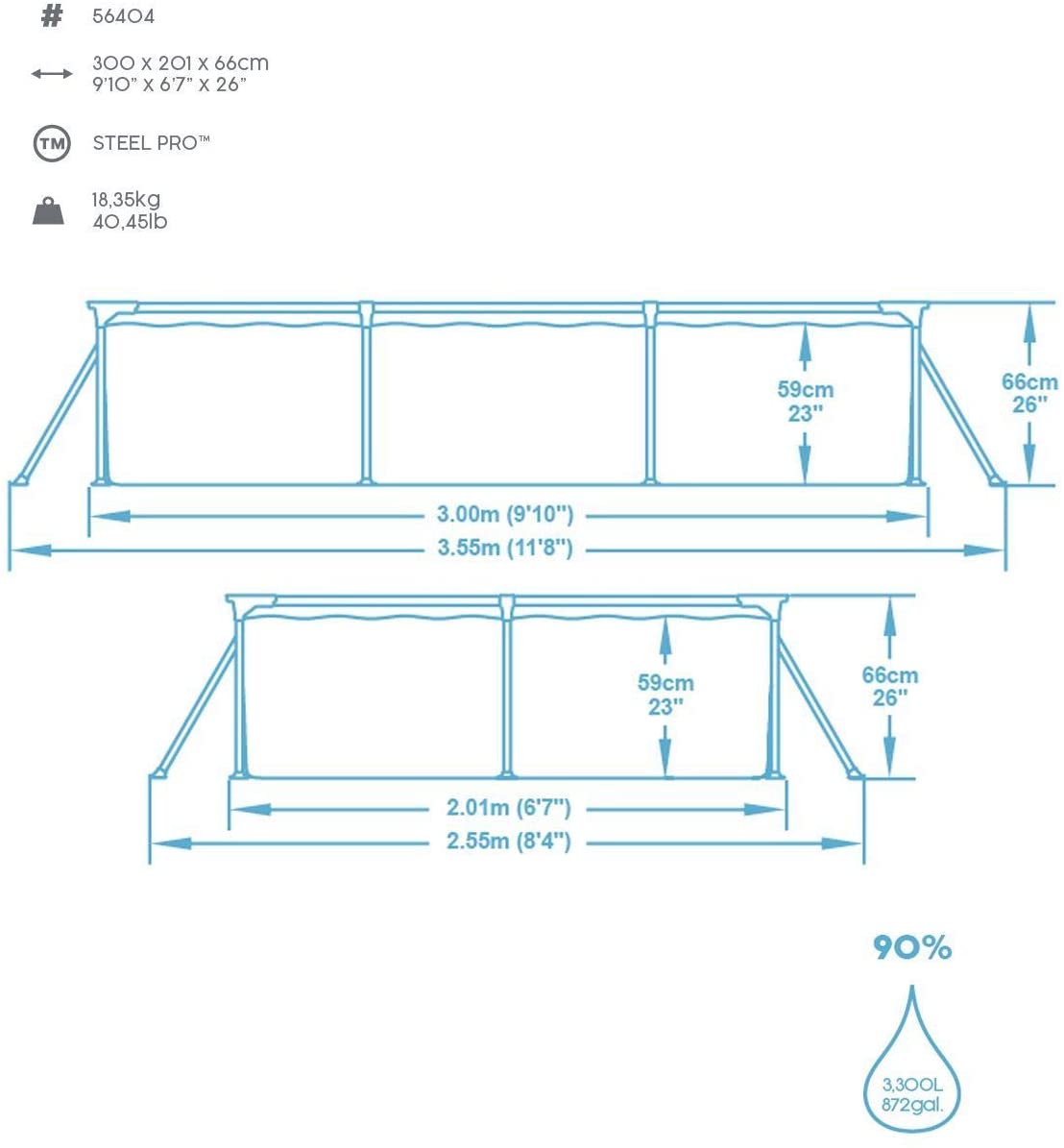 Piscine hors sol Steel Pro™ 300 x 201 x 66 cm – Bestway