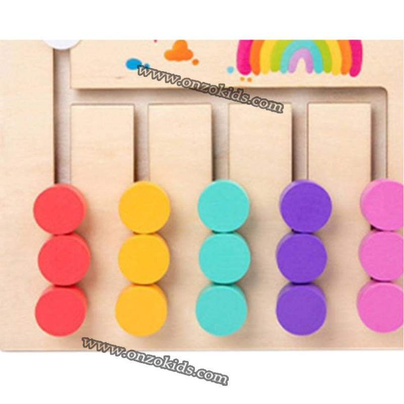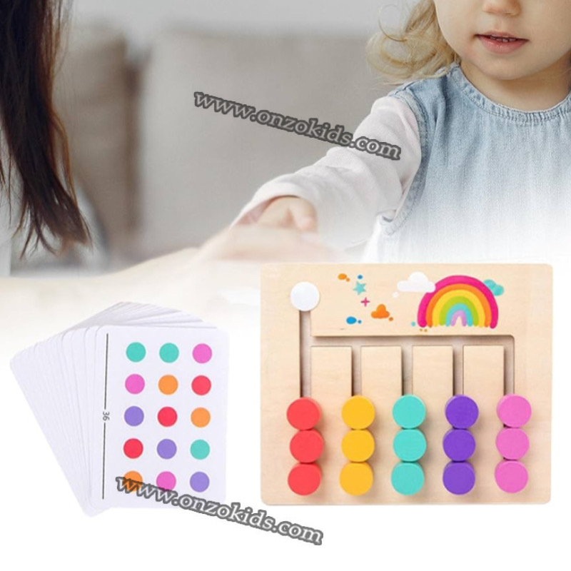 Il permet d’entraîner les tout-petits à reconnaître les couleurs, à augmenter la capacité d’observation et de logique, la coordination œil-main.