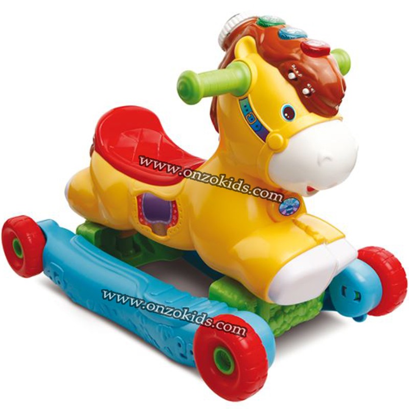 Un détecteur de mouvement déclenche des sons du poney ou des mélodies. Les boutons lumineux permettent de découvrir les couleurs, les animaux mais aussi de nouveaux lieux !