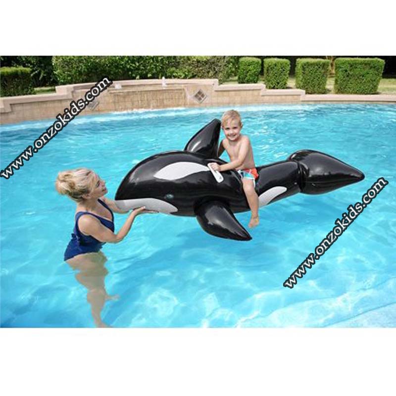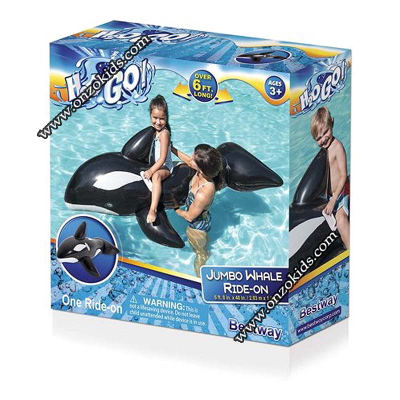 Rider aquatique gonflable Bestway disponible en baleine noire Jumbo. Il a des poignées robustes qui aident à tenir tout en roulant dans l’eau. C’est très amusant pour les enfants de s’amuser à la plage et à la piscine