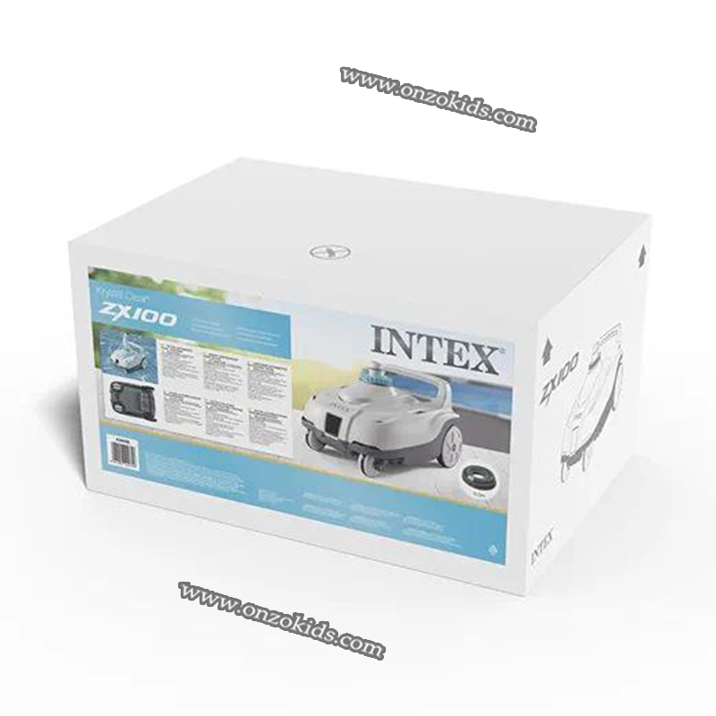 Comme les autres robots de la gamme, le robot ZX100 Intex est très simple à utiliser et à faire fonctionner. Une turbine à eau et des engrenages entraînent les 4 roues et les 2 brosses de nettoyage. Il vous suffit de brancher ce robot à la buse de refoulement du bassin. Sa traction 4 roues permet un nettoyage rapide et efficace. Son utilisation est intuitive même pour les personnes n’ayant pas l’habitude de manipuler des équipements de nettoyage de piscine.