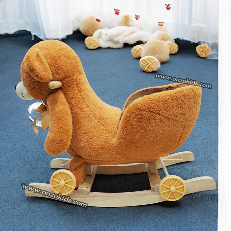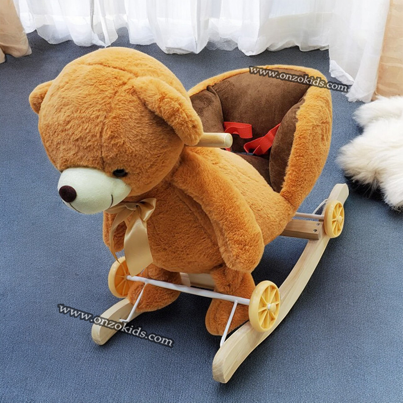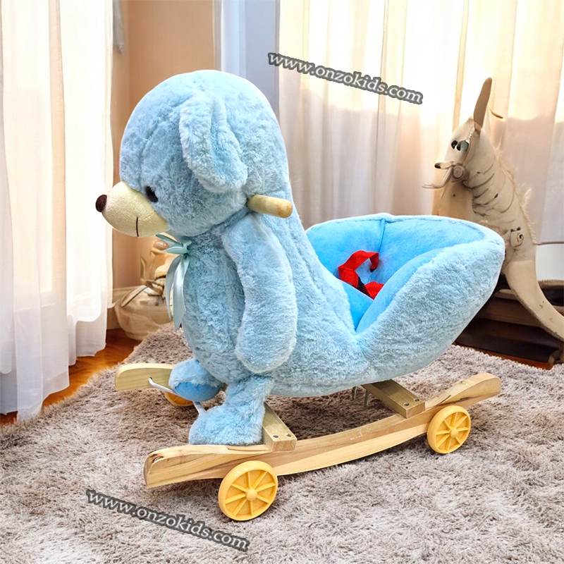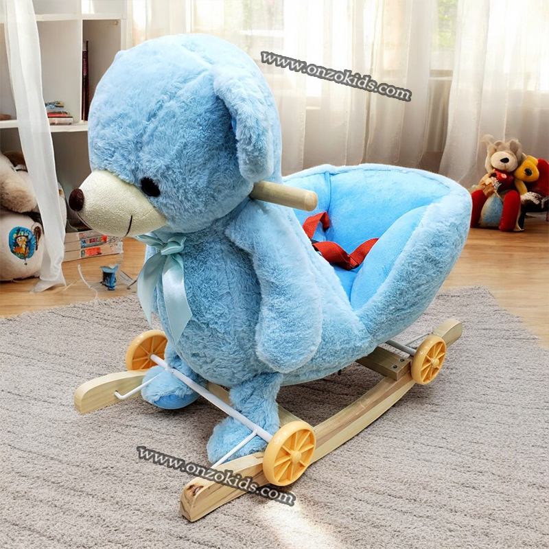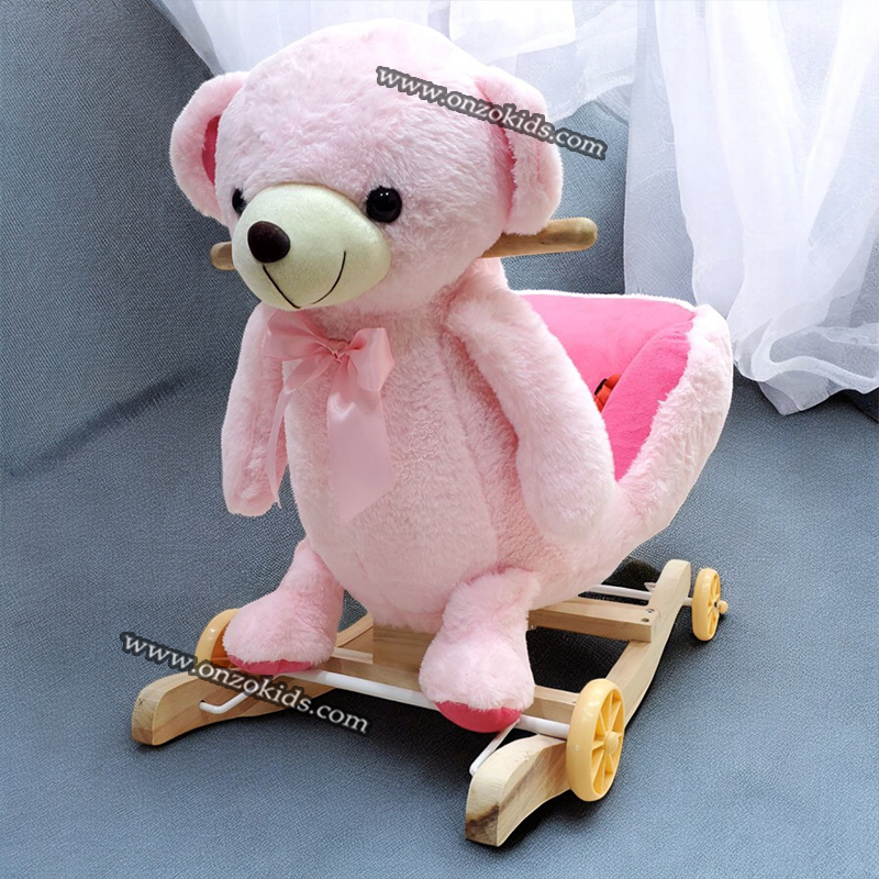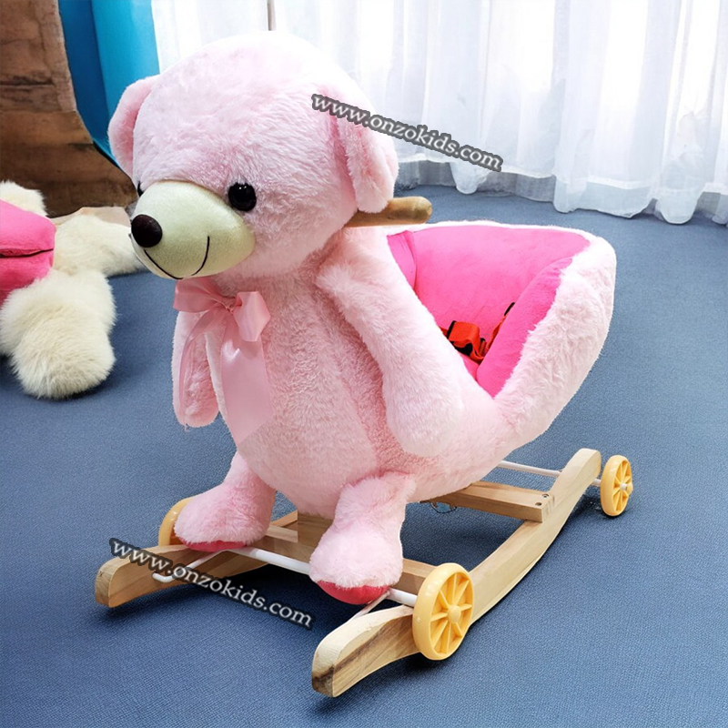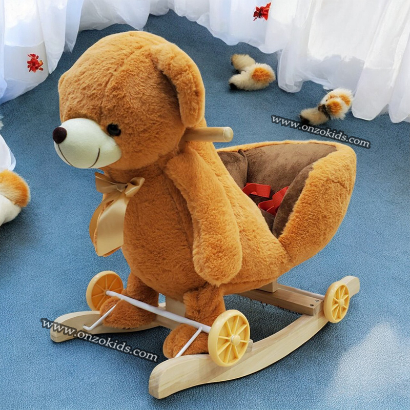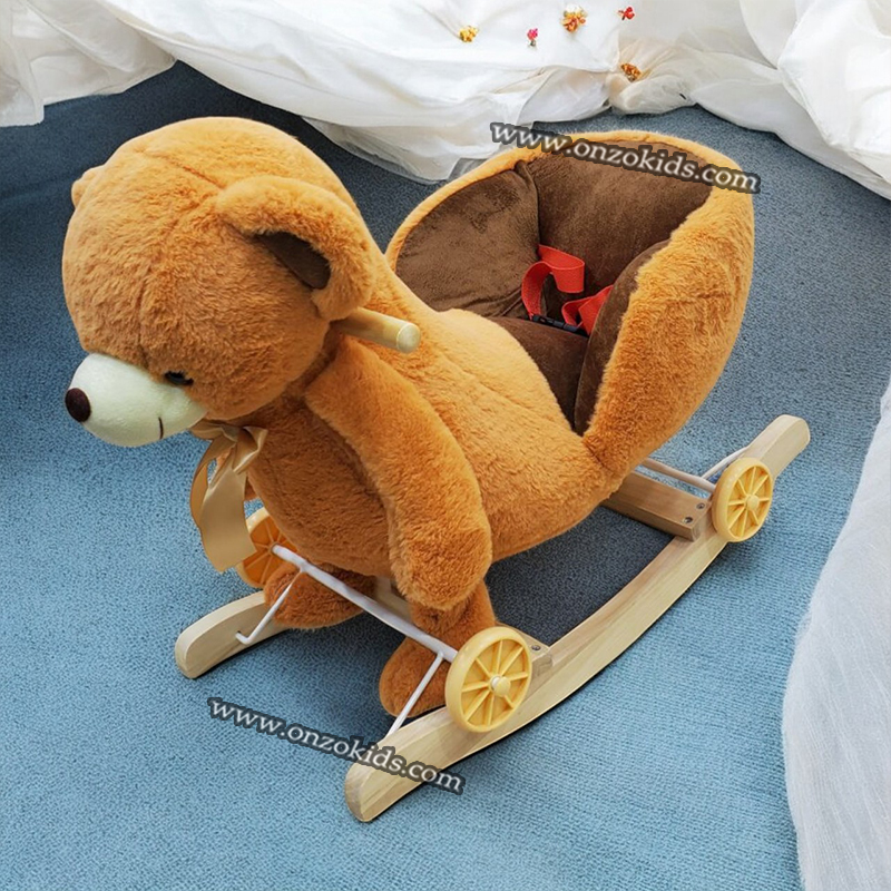 Le teddy bear à bascule est un adorable jouet en forme de nounours monté sur une base de bascule en bois. Le nounours en peluche est doux et moelleux, souvent de couleur beige, brun clair ou gris, avec un visage amical et des yeux brillants cousus. Il est attaché solidement à une structure en bois naturel ou peint, souvent conçue avec des poignées pour que l’enfant puisse se tenir en toute sécurité. Idéal pour les jeunes enfants, ce jouet combine la tendresse d’une peluche avec le plaisir d’un cheval à bascule, offrant un mélange de confort et de divertissement.