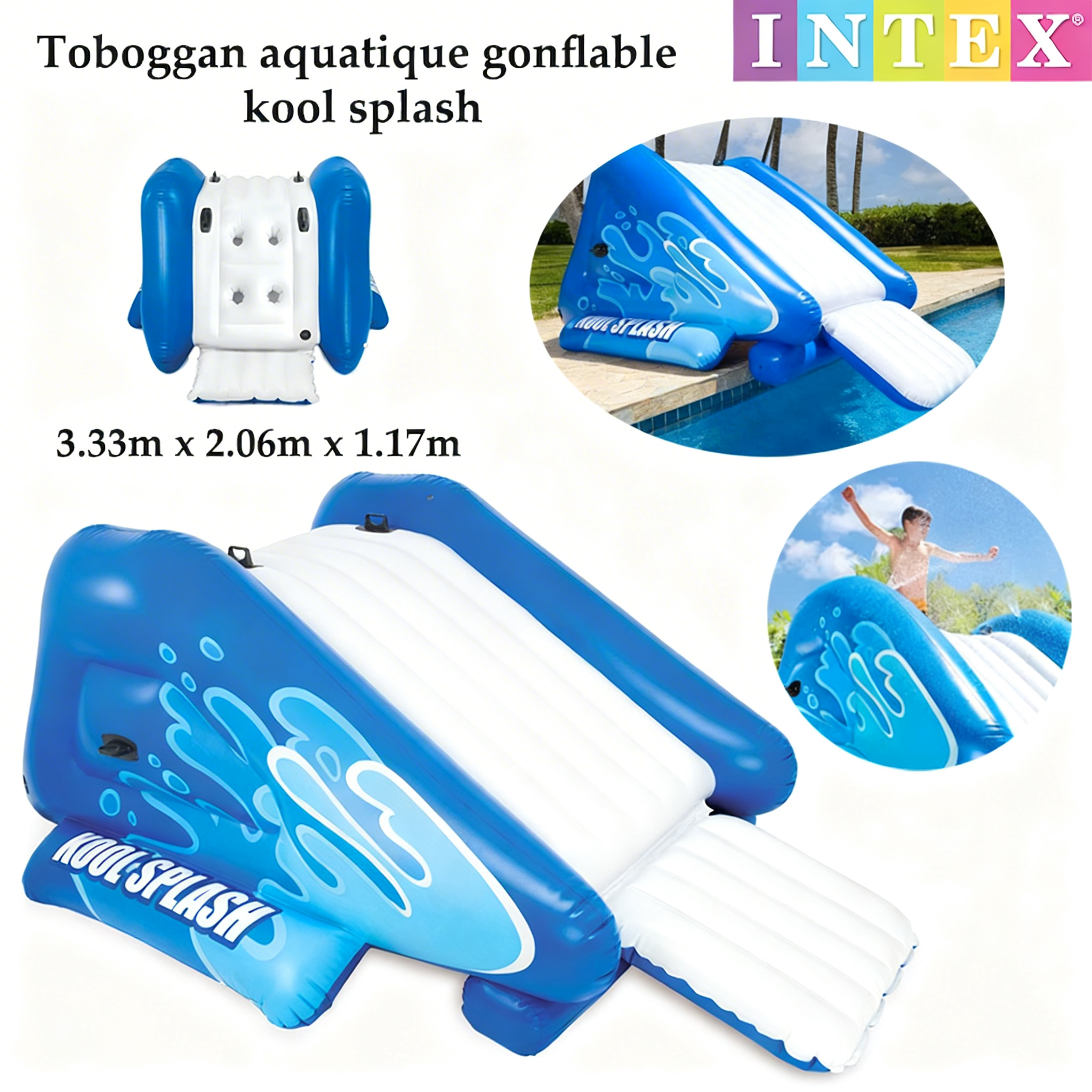 Ajouter un toboggan à votre piscine enterrée est un jeu d’enfant ! Ce toboggan gonflable Intex est facile à installer et comblera de joie les enfants à partir de 6 ans et même les adultes. Spécialement conçu pour les piscines enterrées, ce toboggan gonflable est une alternative économique au toboggan en dur.