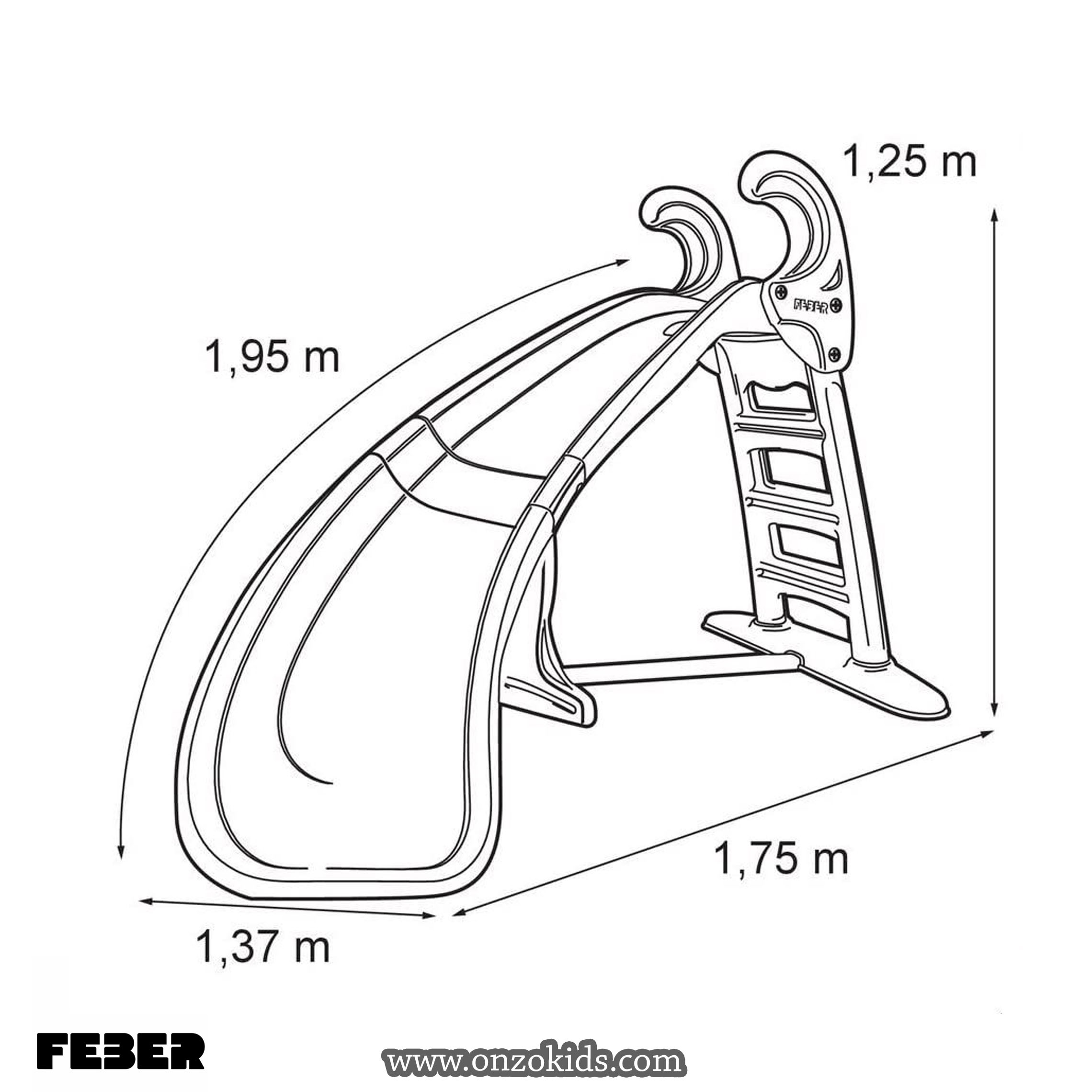 - La longueur du toboggan est de 1,95 m, mesurée le long du centre du toboggan en suivant la courbe.