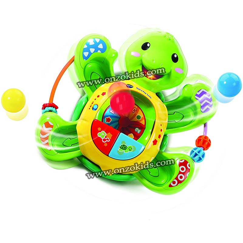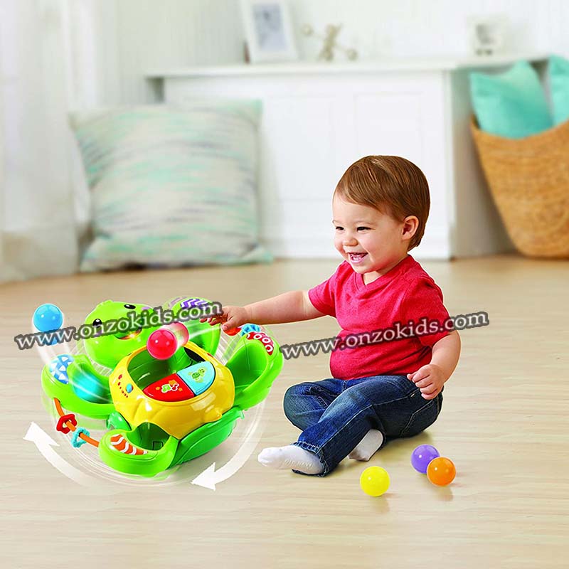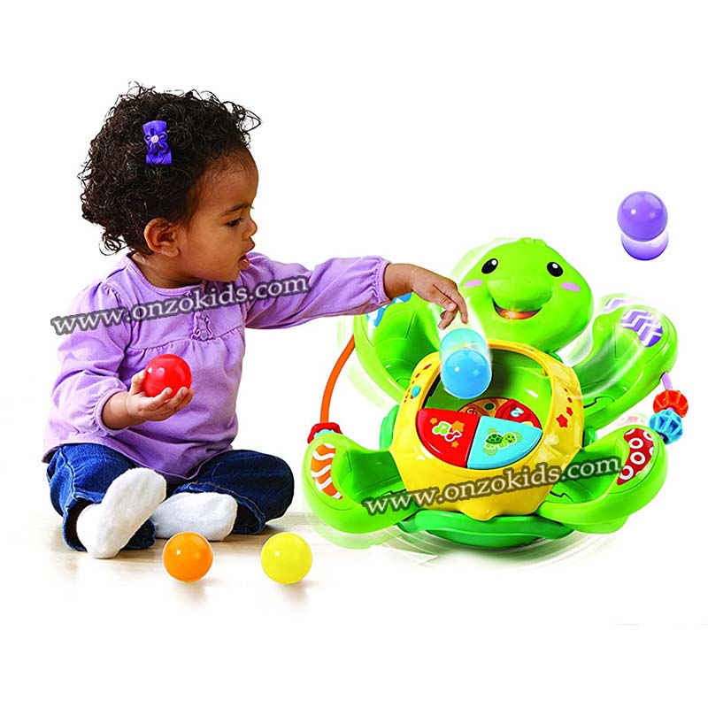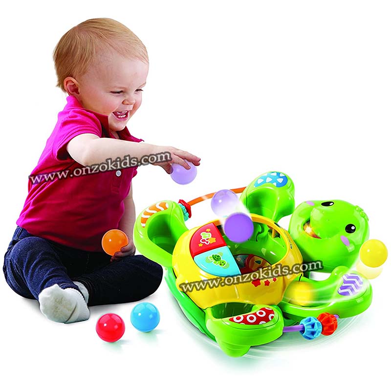 Tortue Tourni Pop’Balles – 9 – 36 mois L’enfant place des balles dans le ventre de la tortue qui les compte.