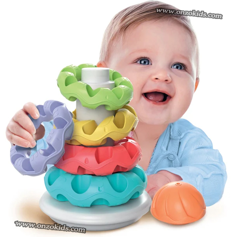 Les anneaux sont fabriqués avec des surfaces différentes pour stimuler la perception tactile des enfants.
