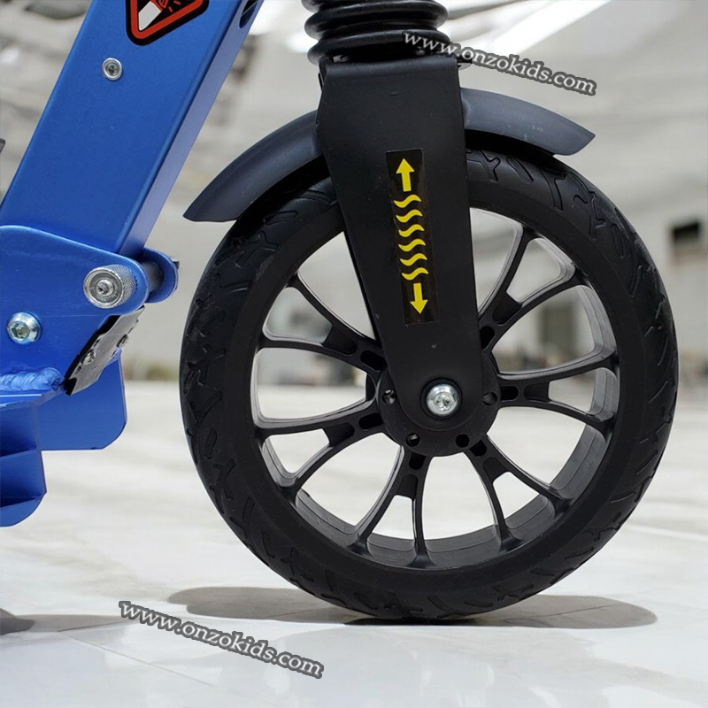 Elle se démarque grâce à ses deux grandes roues agrémentées d’un revêtement en polyuréthane particulièrement épais. Cette trottinette grandes roues vous permet d’emprunter facilement les rues pavées des vielles villes ainsi que les chemins de graviers.