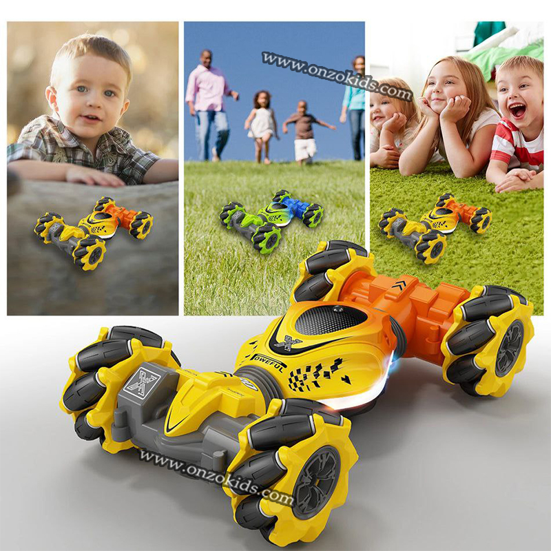 Notre geste de détection de cascadeur RC Car lumières colorées intégrées et de la musique joyeuse.Alzaine de la lumière et de la musique choquantes, tournant le coup de sifflet Tiger, l’enfant pourrait jouer la voiture de jouet de cascade pendant la journée et la nuit. Les terrains, tels que les pelouses, le gravier, la saleté, le rock, sur la plage, apportent une variété de cascades changeant de rotation à votre enfant.